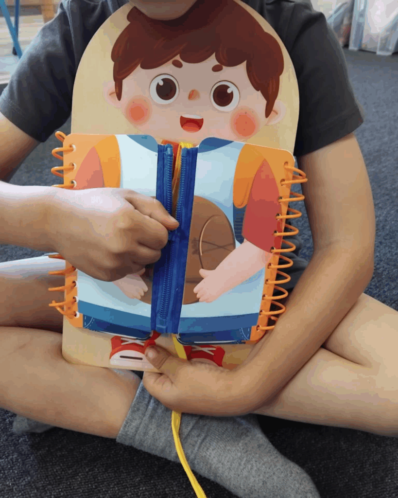 Precyzyjne ruchy rozwijają koncentrację i myślenie sekwencyjne. To transfer umiejętności — z tablicy na codzienne ubranie i zadania szkolne.